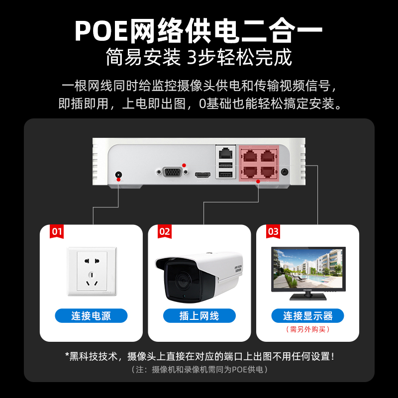 海康威视网络监控摄像头200万POE摄影头手机远程室外高清枪机3T25