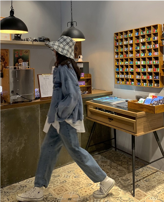 大码港风chic牛仔裤女梨形身材显瘦百搭小个子腿粗胖妹妹mm阔腿裤