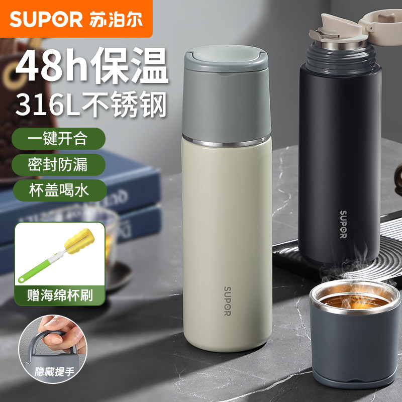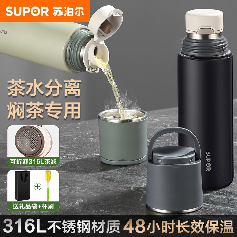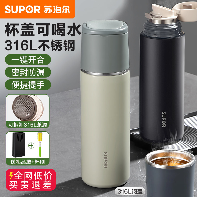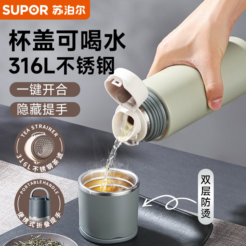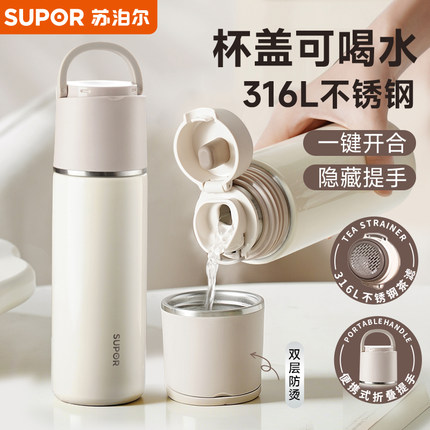 苏泊尔保温杯女士高颜值大容量不锈钢高档泡茶水杯便携杯子新款