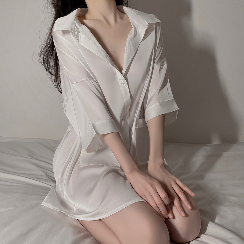 性感睡衣春秋友风高级感衬衣可外穿短袖宽松薄款冰丝衬衫睡裙