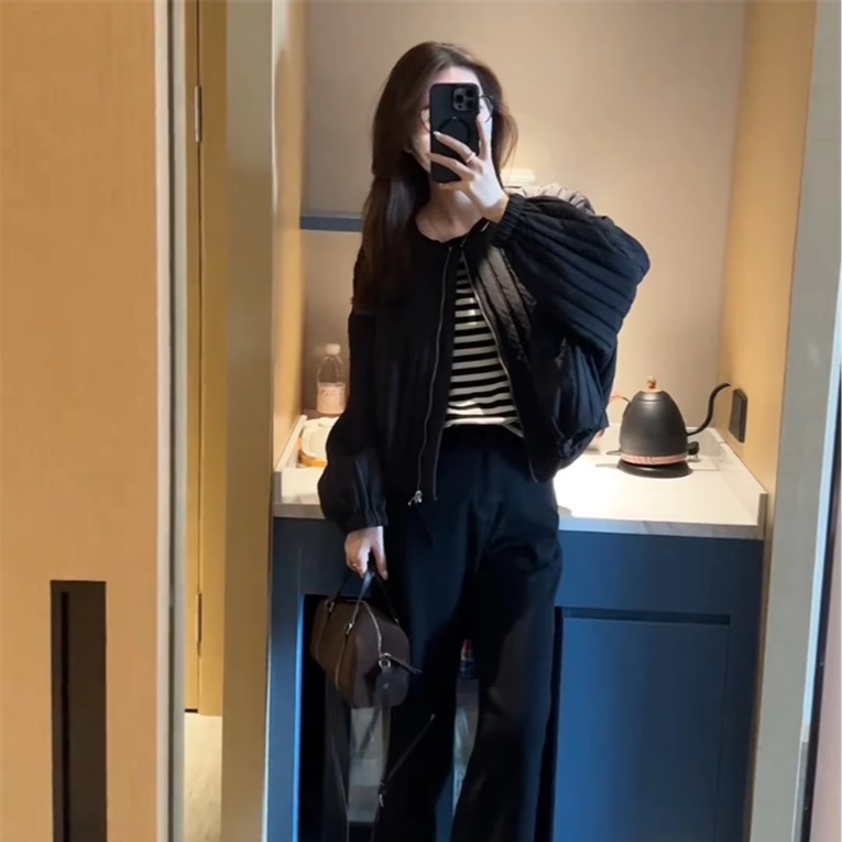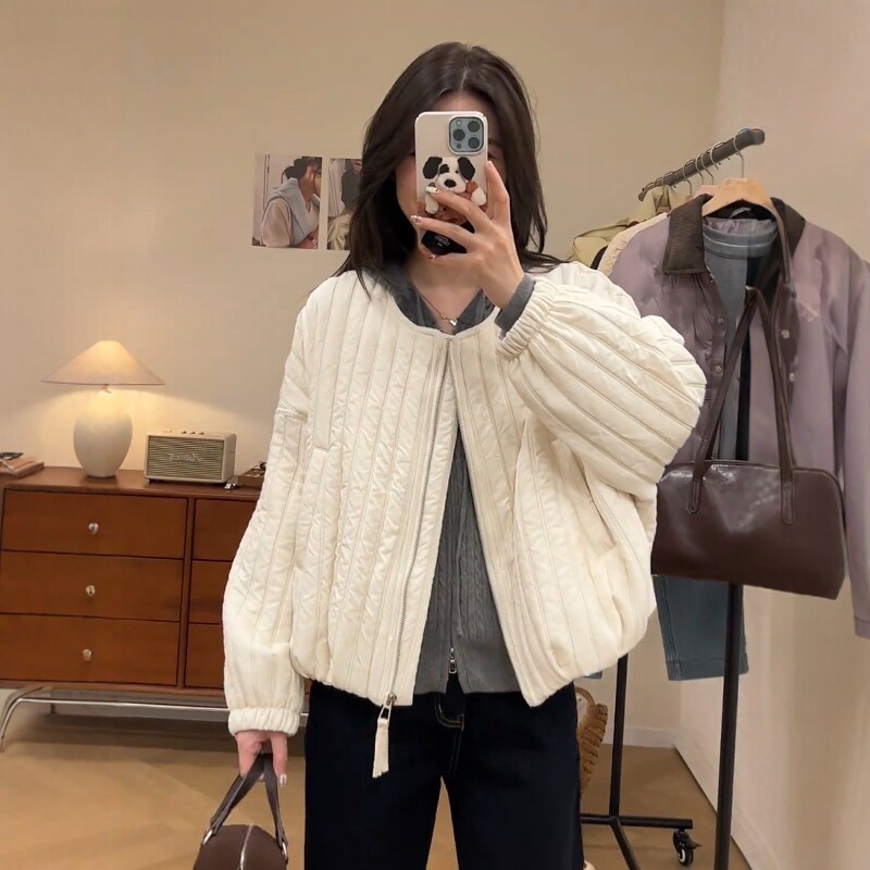 爆款高级感圆领竖条纹加棉短外套