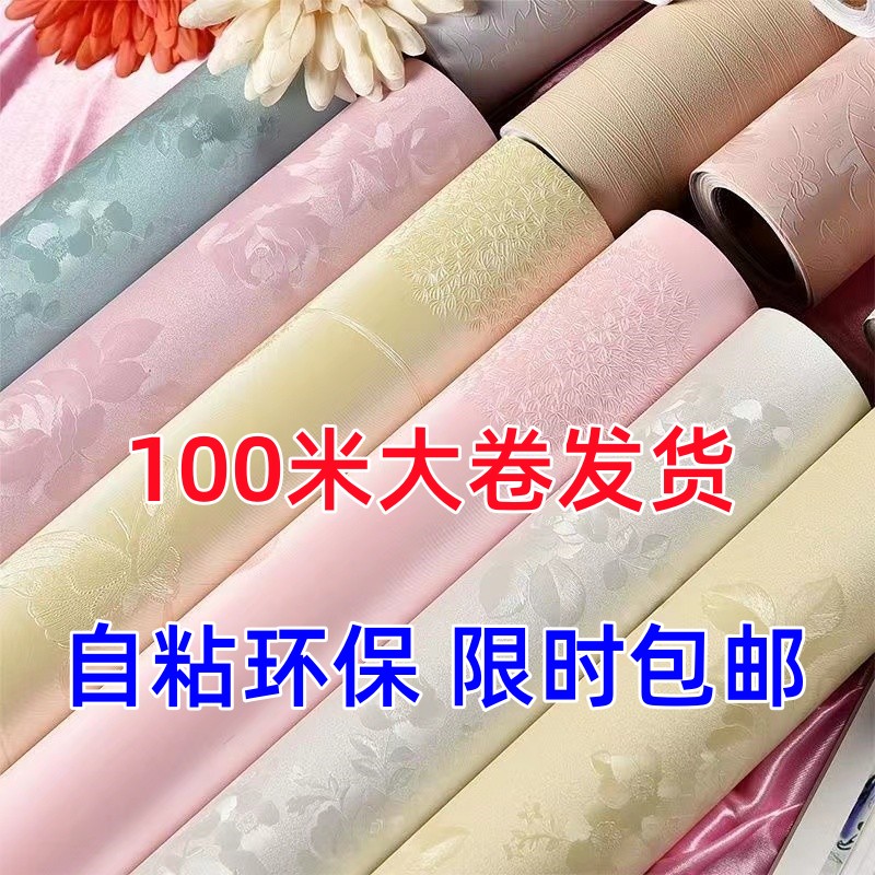 50米大卷家用自粘壁纸防水防潮加厚卧室温馨客厅背景墙面装饰贴纸
