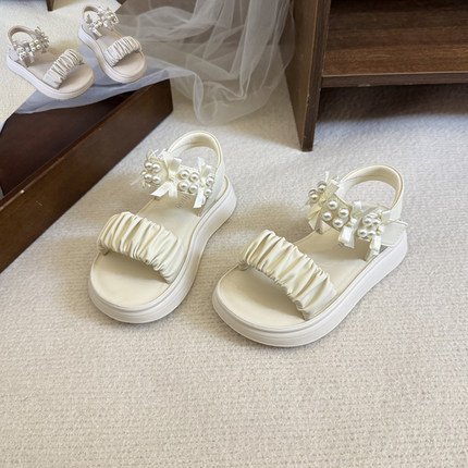 厚底罗马高颜值浅紫色公主女童凉鞋露趾2026年新款沙滩夏季小女孩