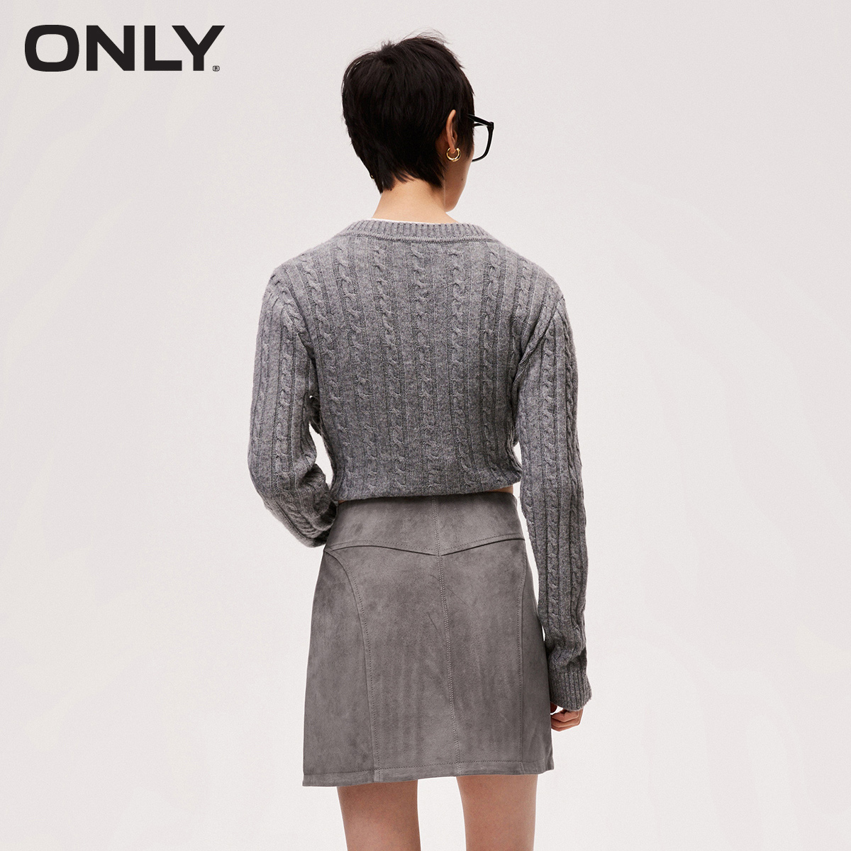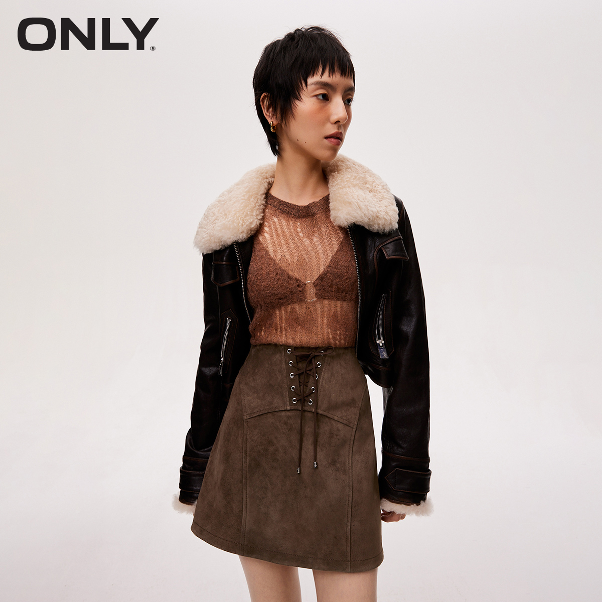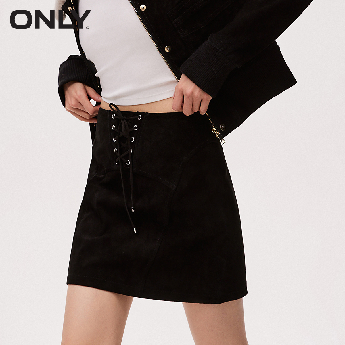 ONLY秋季潮流设计感拼接剪裁PU短款半身裙女|12419M004