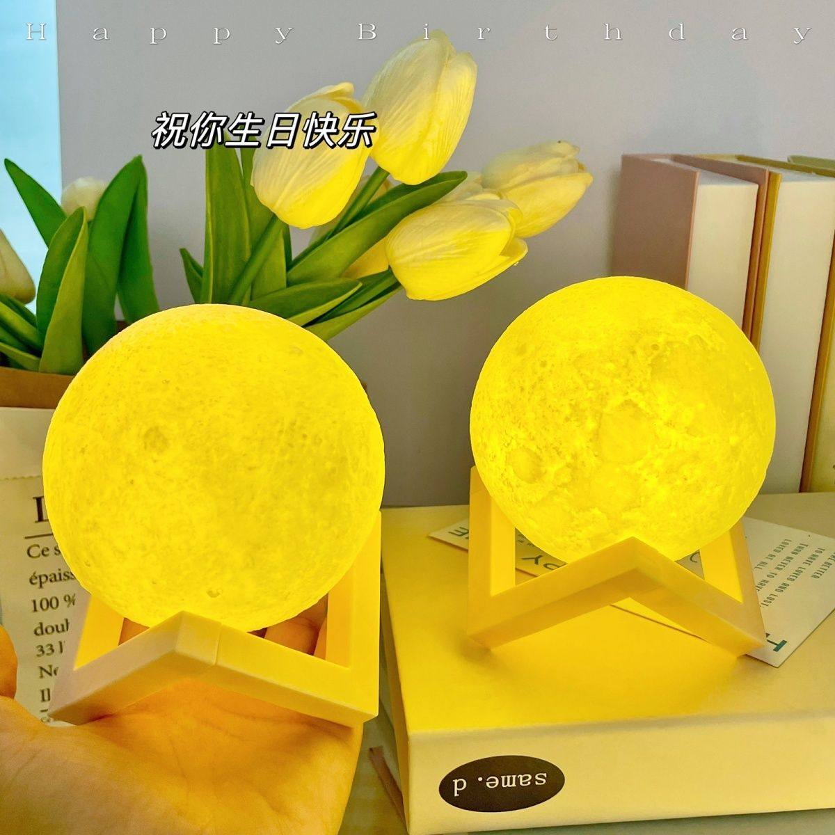 3D月球灯创意小夜灯卧室床头灯送女朋友闺蜜生日礼物小夜灯睡眠卧室床头台灯光浪漫星空灯床头氛围网红