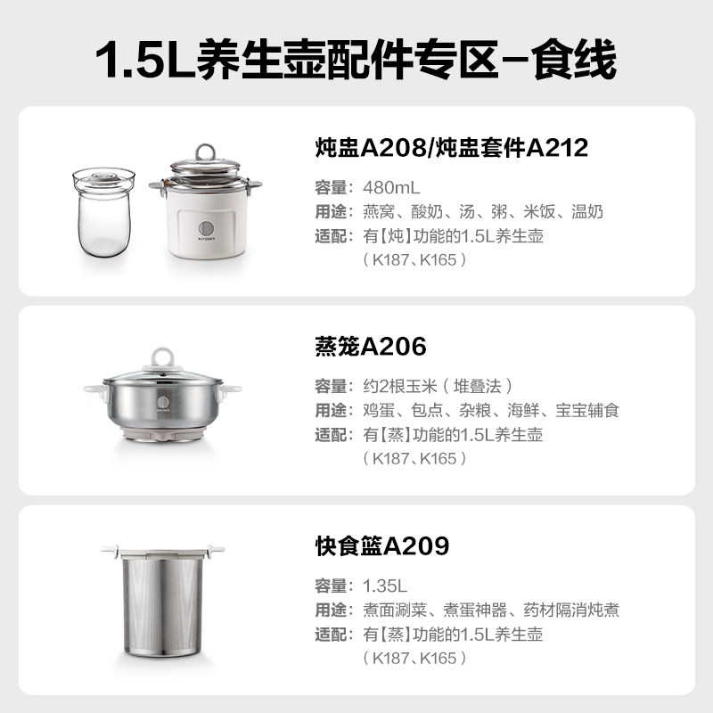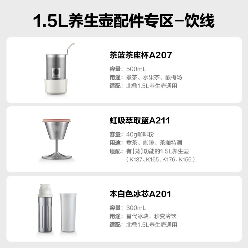 *北鼎养生壶F571养生壶专属配件不锈钢茶蓝k32萃取篮A200玻璃炖盅
