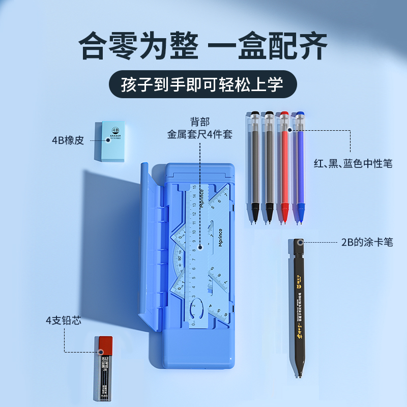 猫太子一日之用文具盒小学生铅笔盒儿童多功能收纳笔盒男孩女孩创意笔袋一套都有一盒配齐适配多笔型好推荐