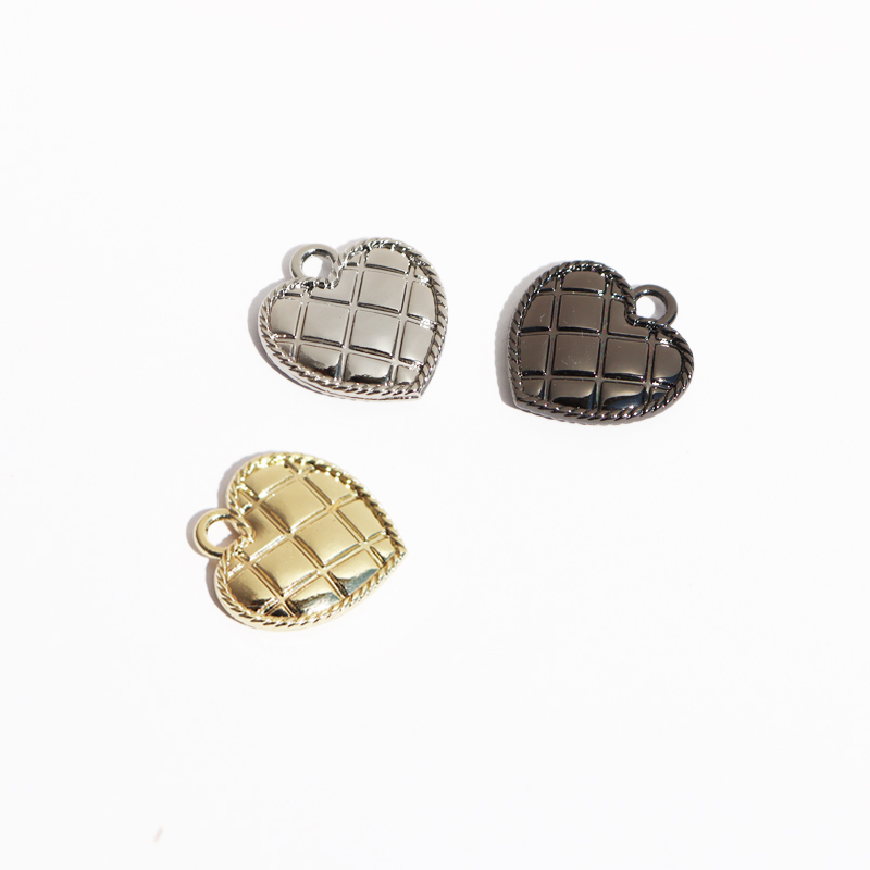 DIY挂件配件双面菱格镀浅金枪黑银色吊坠实心合金小爱心 心形吊饰