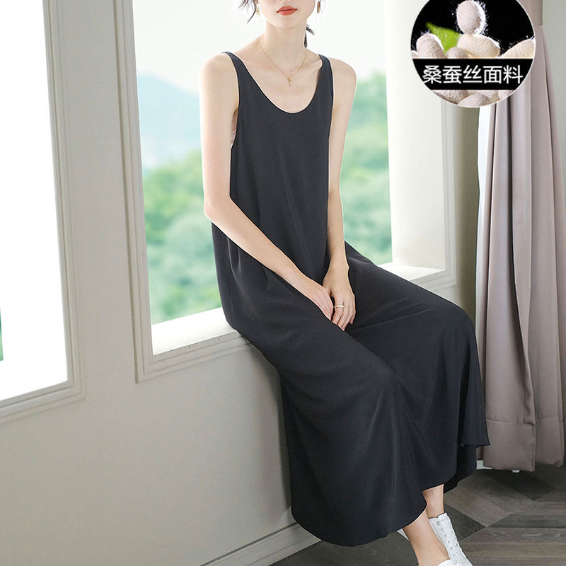 夏季超长款背心吊带裙女2021新款宽松外穿无袖美背连衣裙过膝长裙