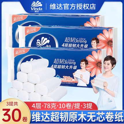 维达超韧无芯卷纸卫生纸巾4层家用实惠装卫生纸厕所纸卷筒纸厕纸