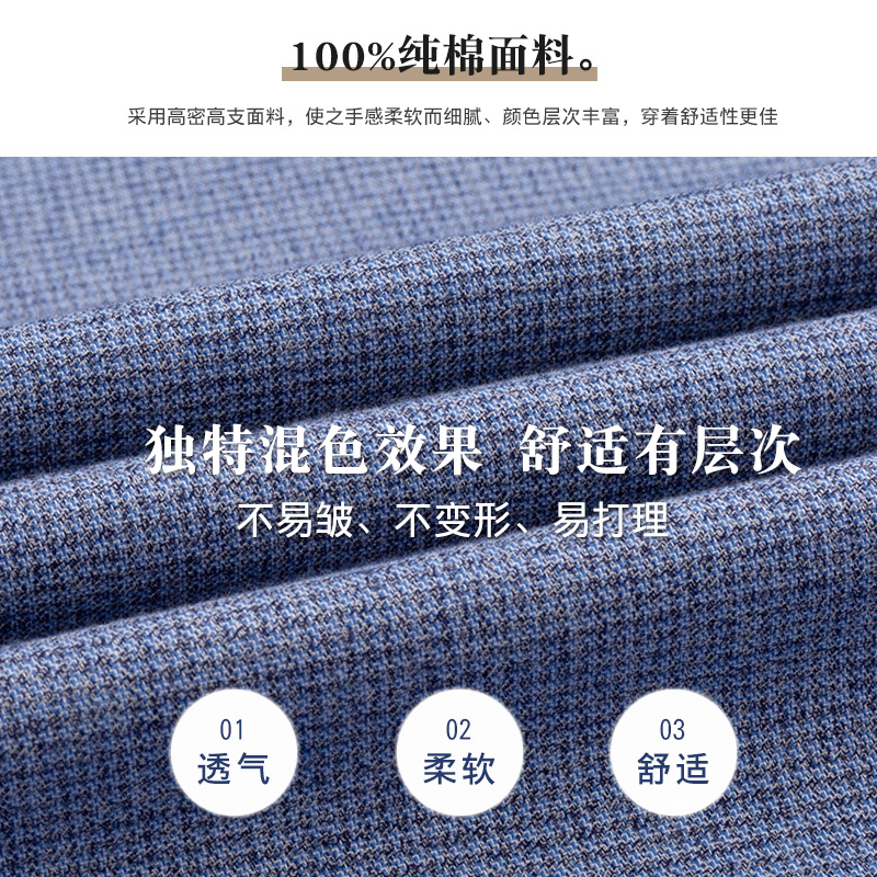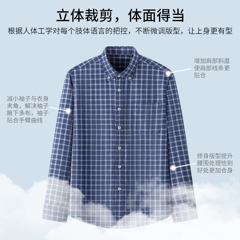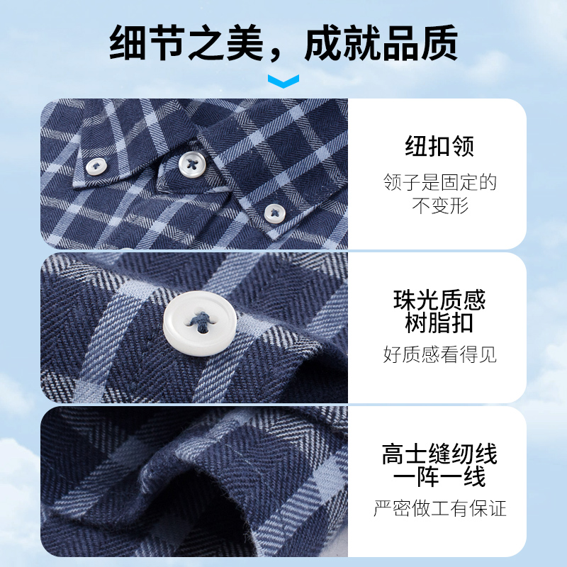 保罗春秋季男士全棉长袖衬衫纯色磨毛柔软中青年爸爸宽松纯棉衬衣
