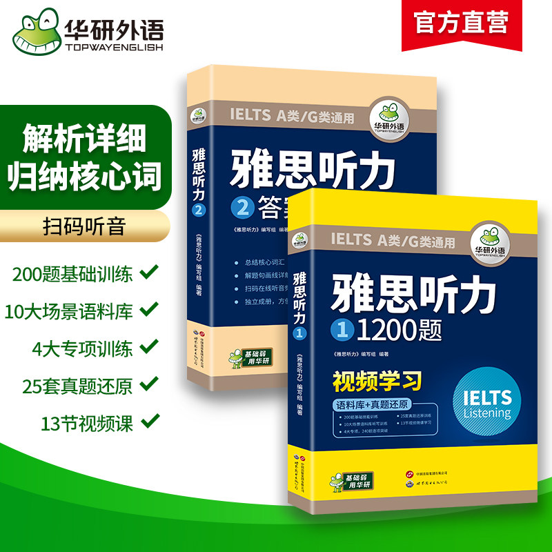 华研外语 雅思听力1200题 ielts剑桥雅思英语听力语料库真题题库还原搭词汇单词听力写作口语阅读考试资料书籍教材全套a类
