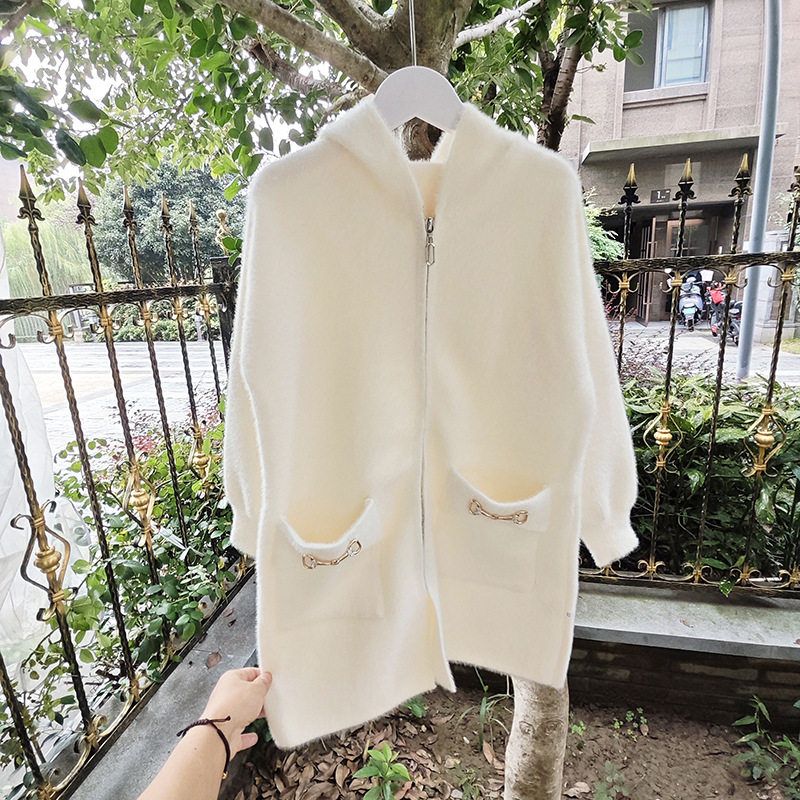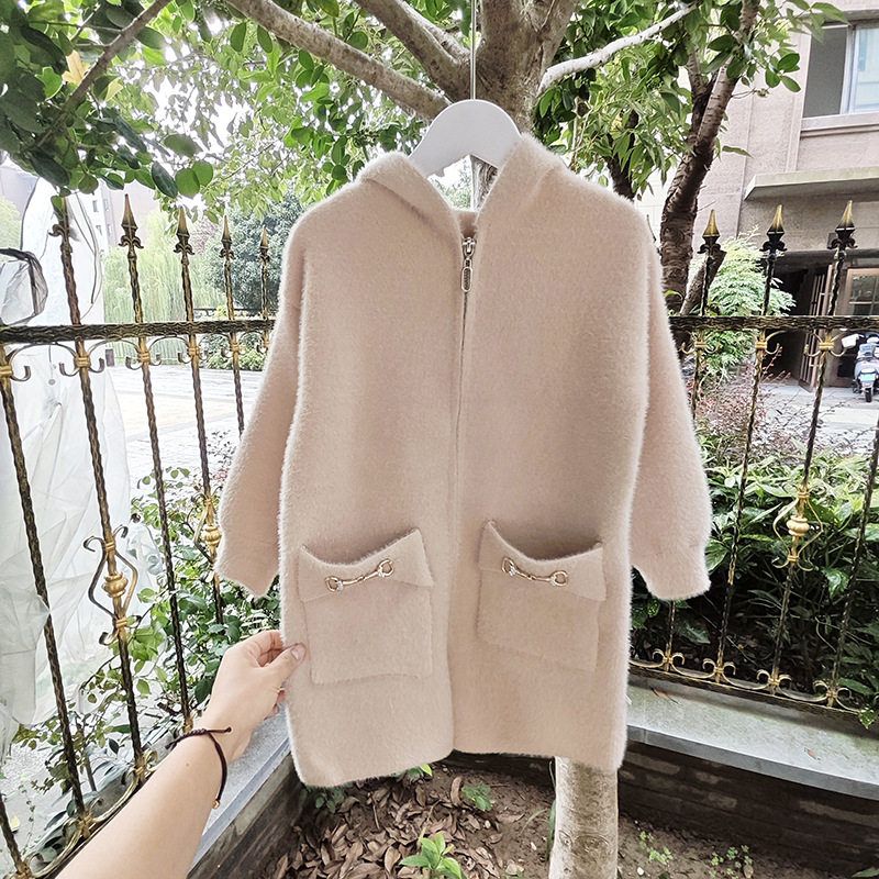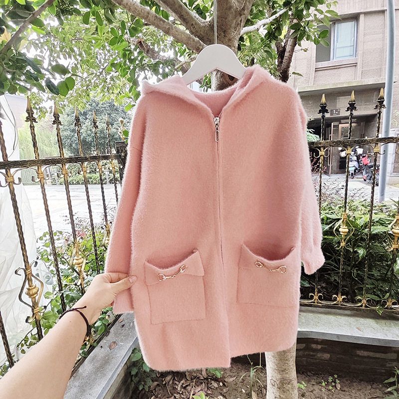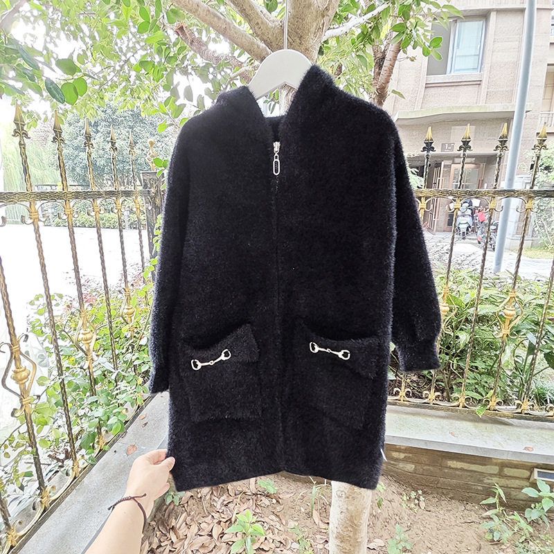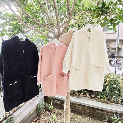 贝哆哈秋冬款毛衣女童长袖针织开衫中大童女童连帽上衣中长款外套