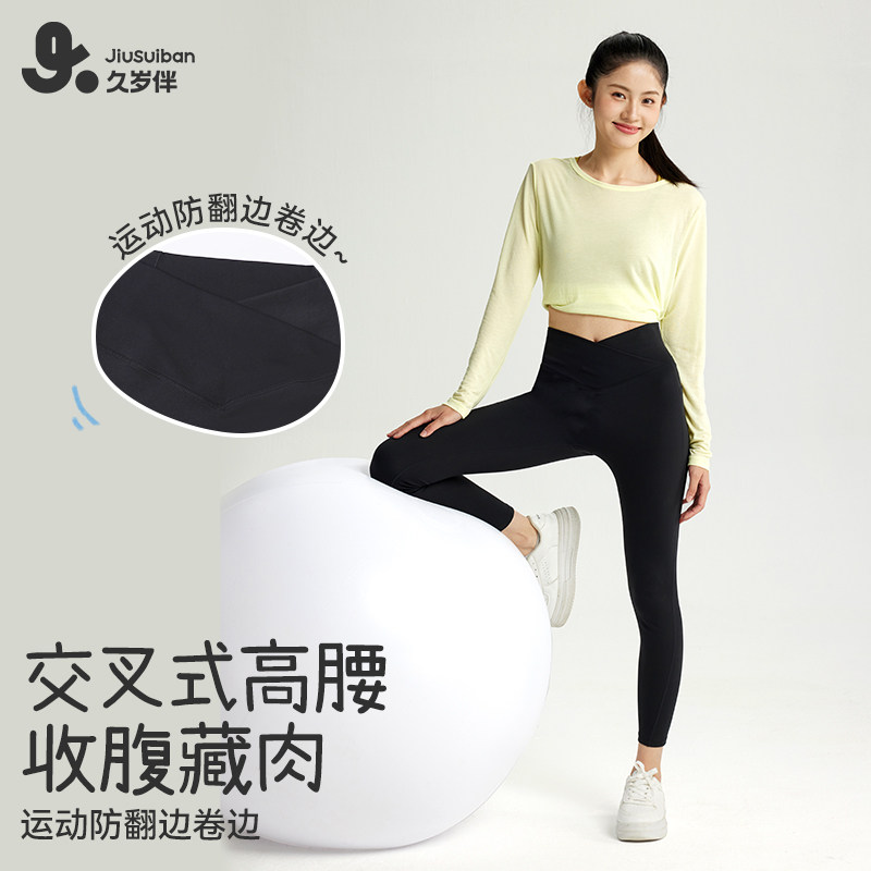 久岁伴女士裤子外穿高腰显瘦紧身长裤少女运动瑜伽裤九分打底裤