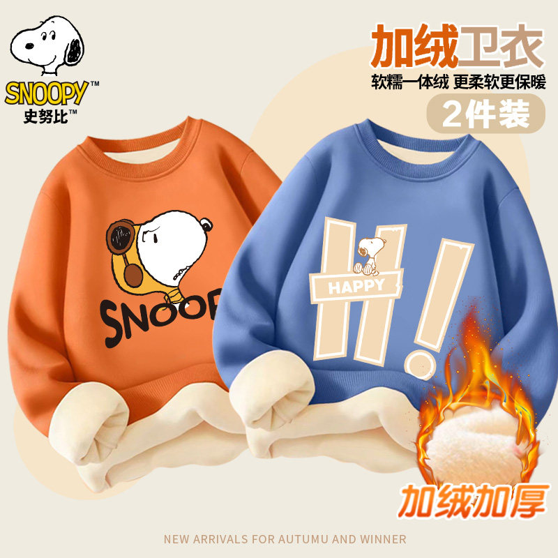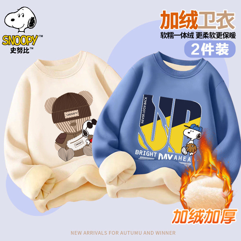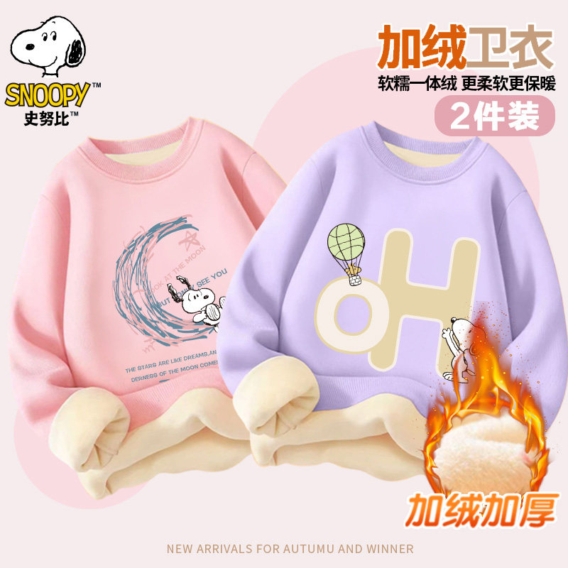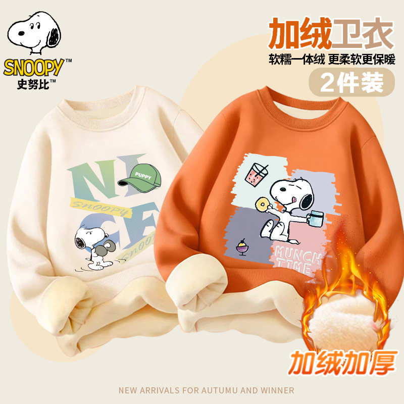 史努比童装秋冬款加绒圆领套头卫衣加厚男女童中大童百搭SZZJRW2