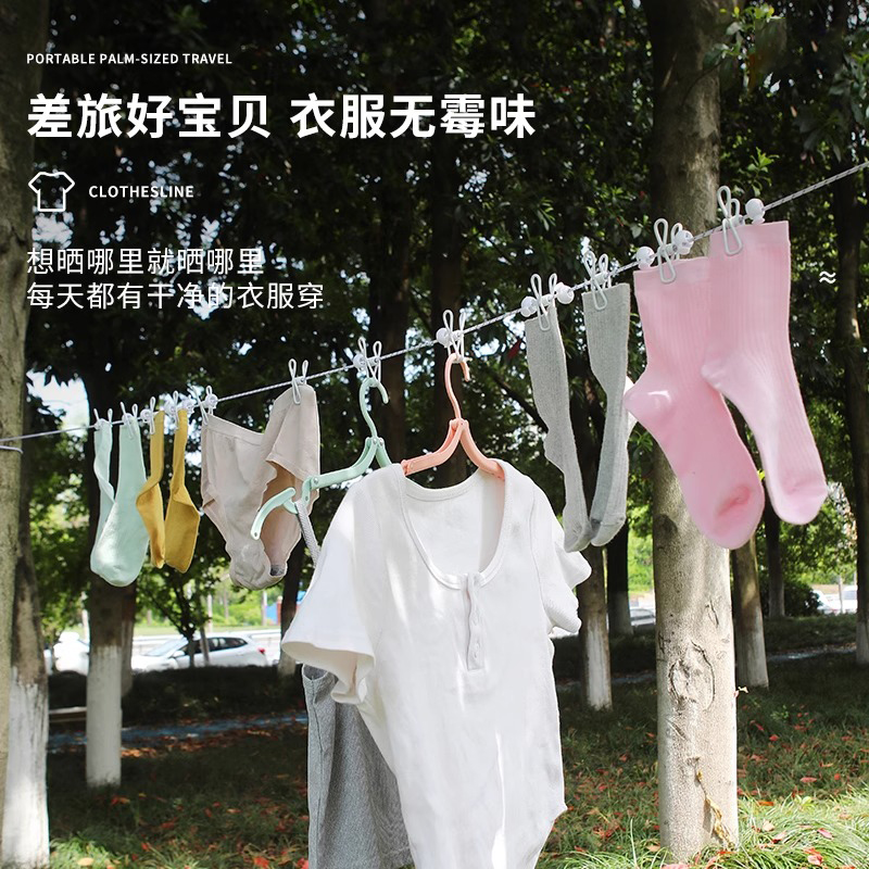 旅行晾衣神器折叠衣架便携旅游晾衣绳带夹子酒店晒衣绳户外晒被绳