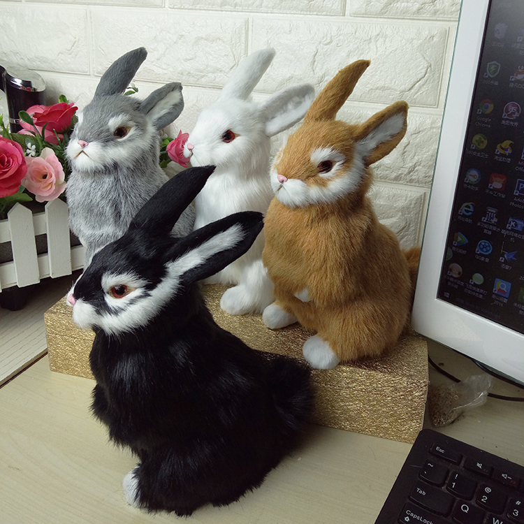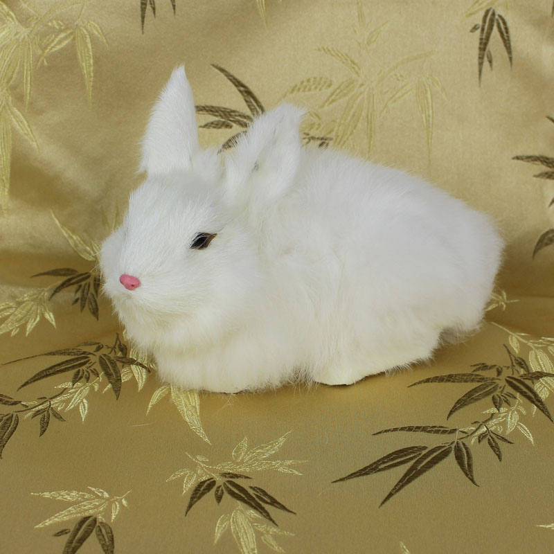 真皮毛仿真兔子吃草兔十二生肖摆件皮草工艺品可爱小白兔道具包邮