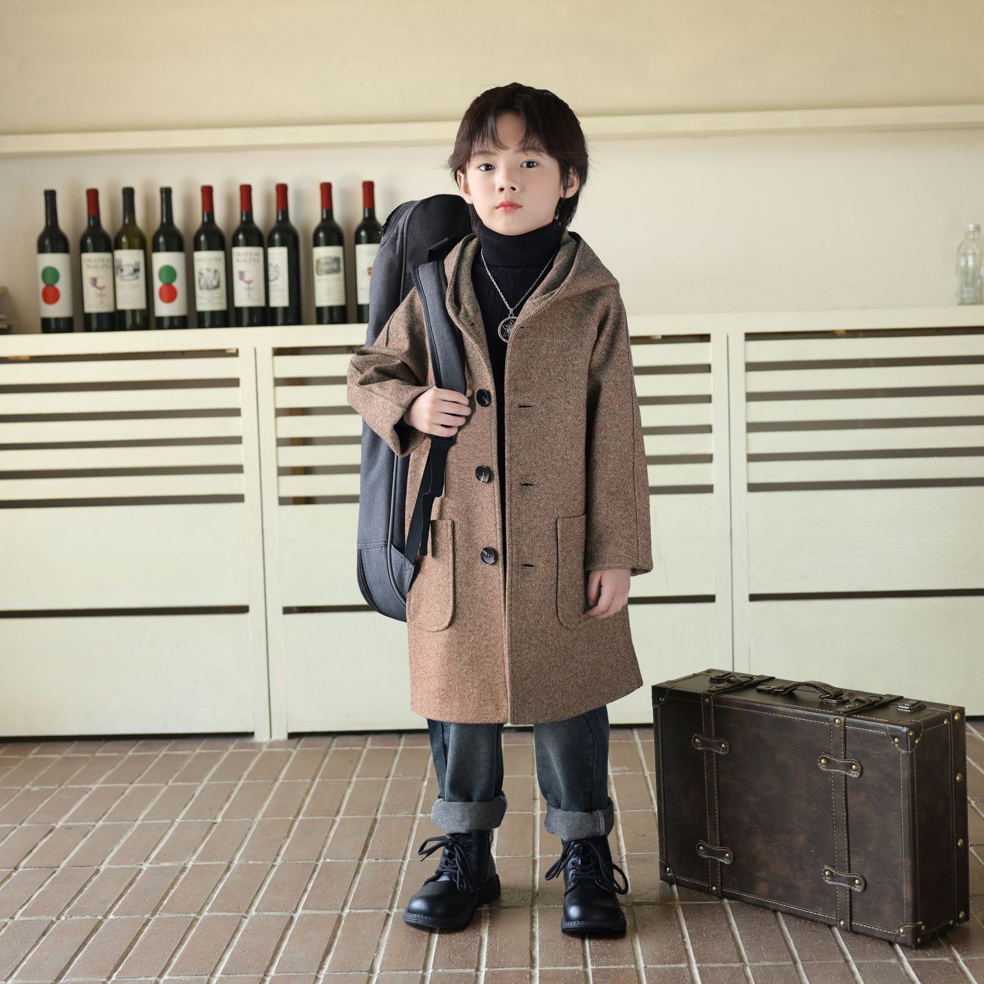 男童呢子大衣帅气儿童毛呢外套男孩西装风衣童装2025新款男孩洋气