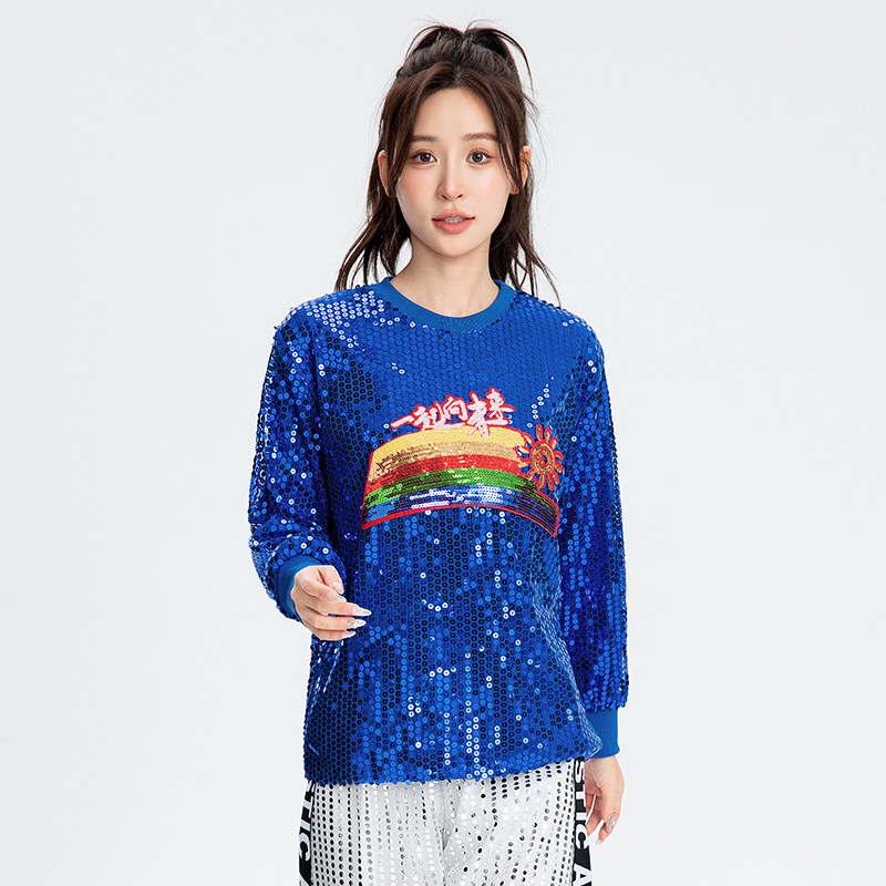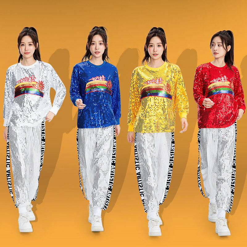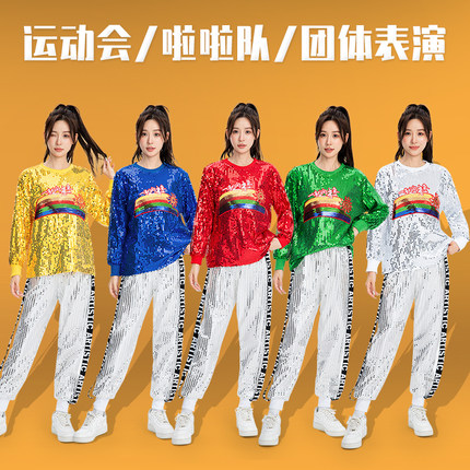 新款广场舞服装男女成人套装爵士舞舞蹈服啦啦队现代舞亮片演出服