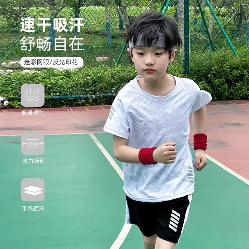 男童速干运动套装2025新款童装儿童夏装男孩短袖大童夏季网眼球服