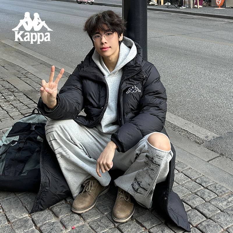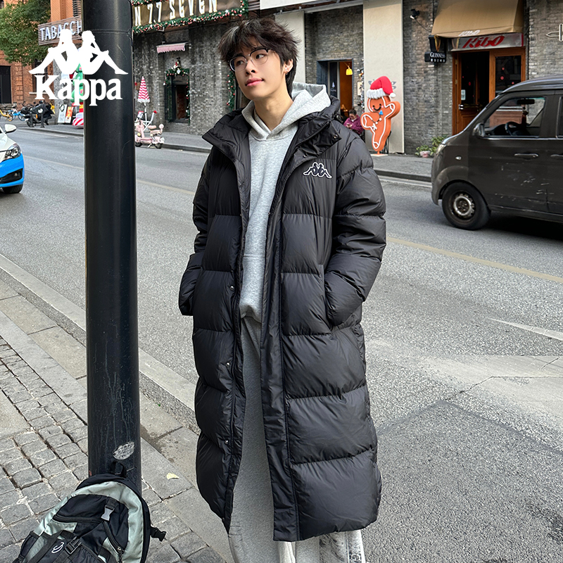 Kappa卡帕背靠背运动羽绒服外套女新款冬季男士长款保暖连帽棉服