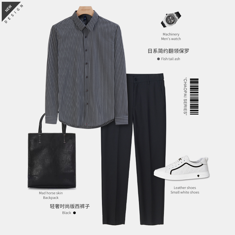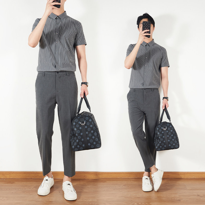条纹衬衫男套装定制长袖短袖商务休闲西装裤子男士时尚裤子高级感
