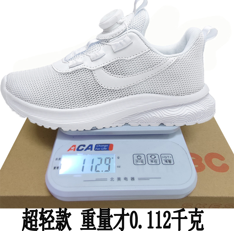童鞋男童女童春秋季儿童超轻旋转纽扣小白鞋网面透气白色运动鞋子