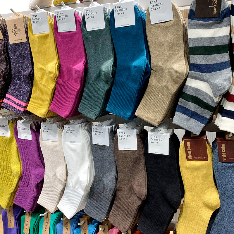 韩国中筒袜女复古螺纹ETNA简约吸汗棉秋冬东大门代购正品潮流短袜