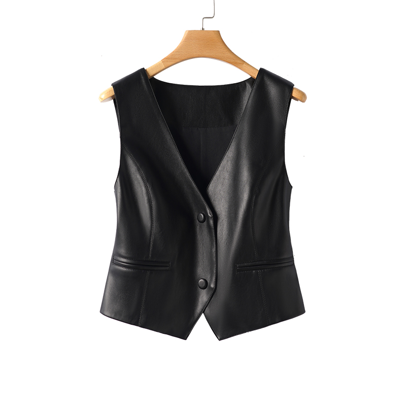 真皮马甲女2025秋季新款V领绵羊皮简约显瘦百搭无袖马夹坎肩外套