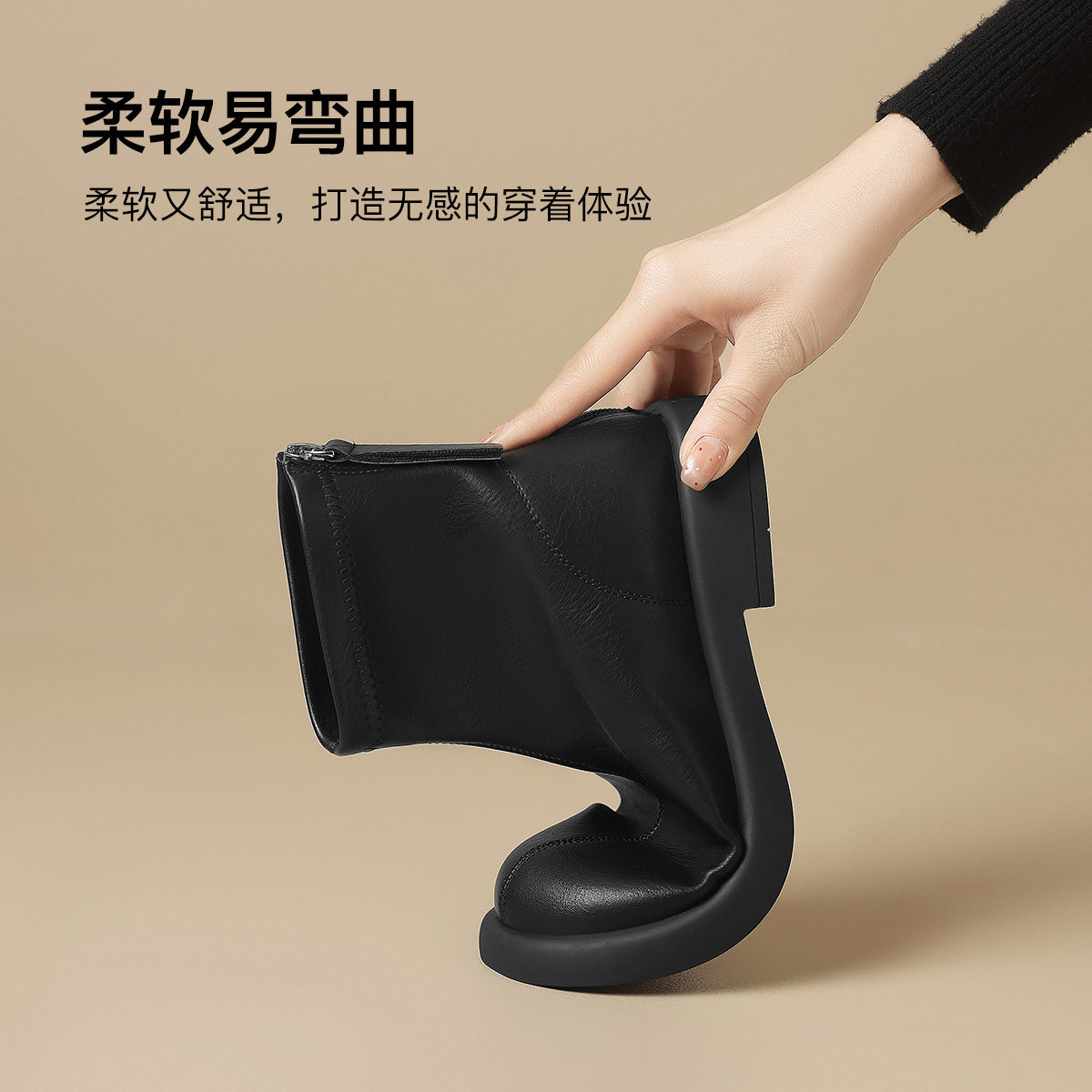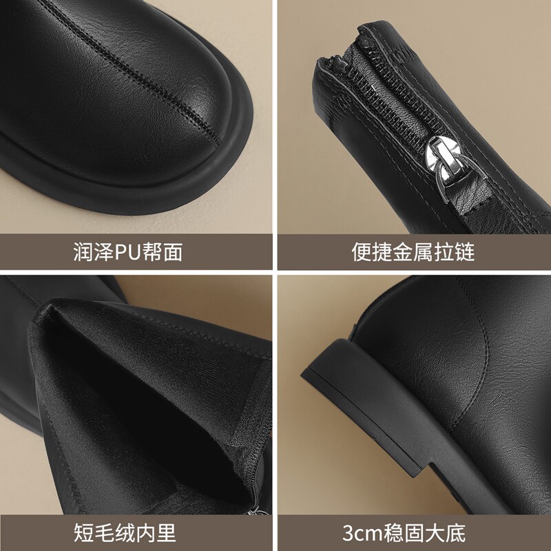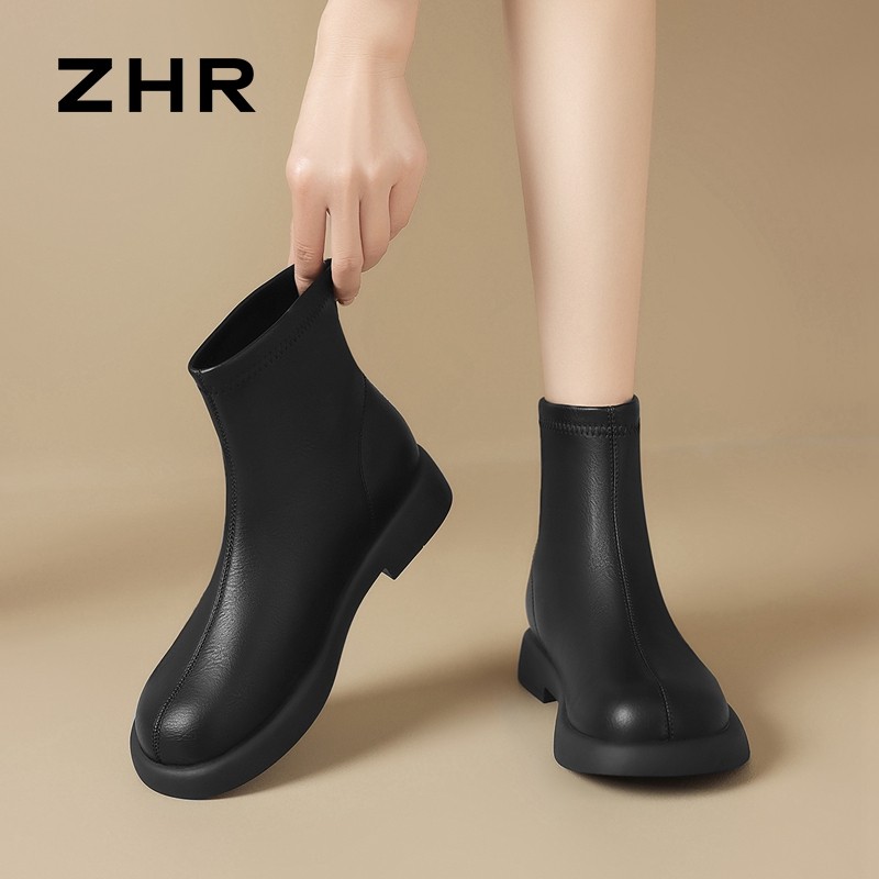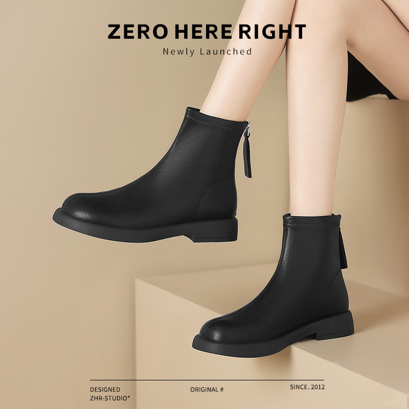 平底短靴女加绒2025秋冬新款女鞋软底及踝裸靴英伦风瘦瘦马丁靴子