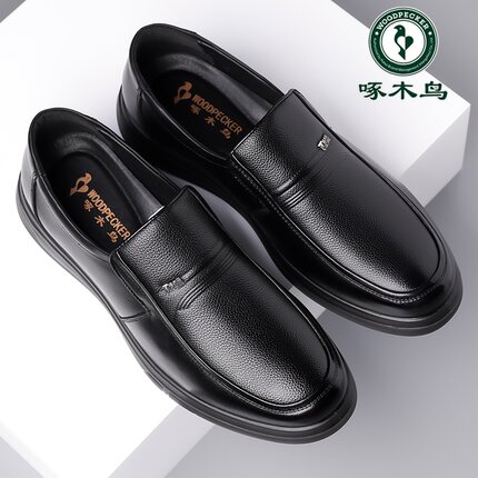 啄木鸟男鞋头层牛皮休闲皮鞋男2024新款春秋季透气防滑中年爸爸鞋