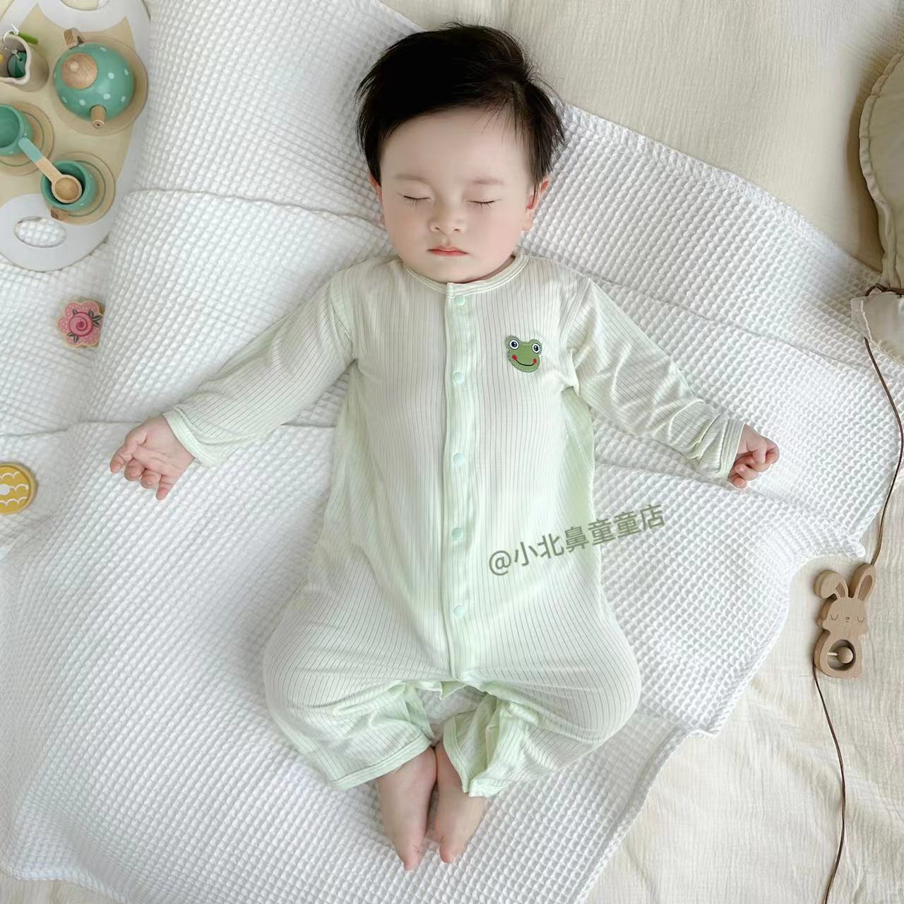 婴儿夏季连体衣薄款莫代尔空调服宝宝长袖哈衣新生儿睡衣无骨爬服