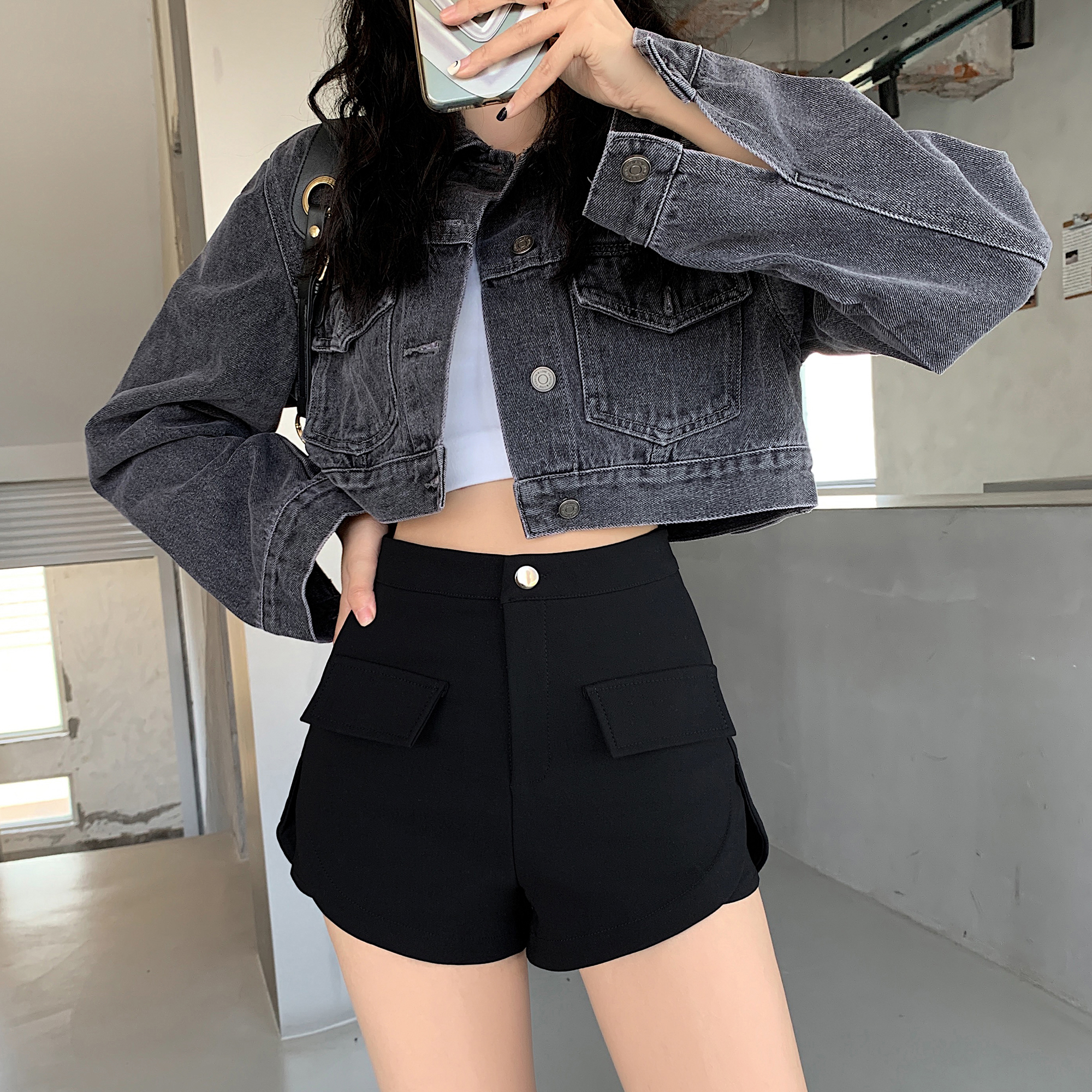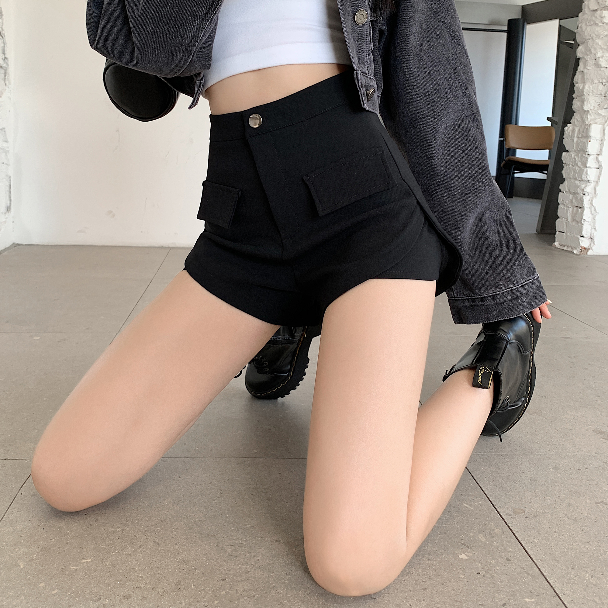 黑色高腰西装短裤女2023夏季新款小个子甜辣妹阔腿热裤外穿靴裤潮