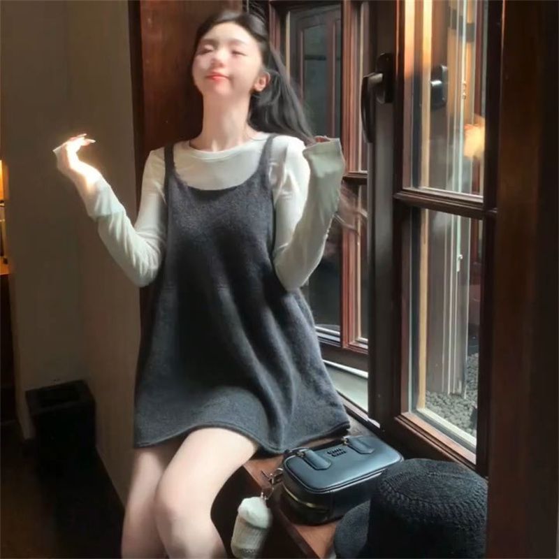 2025早秋时尚气质温柔风针织吊带背心裙搭配长袖打底上衣两件套装