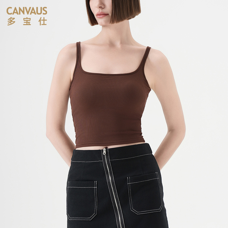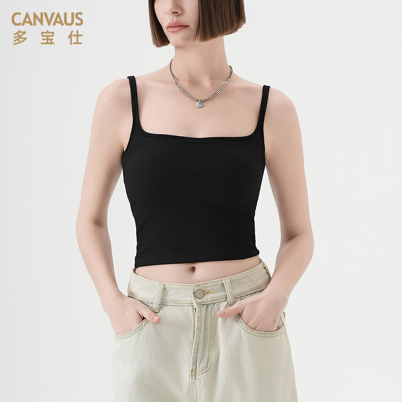 多宝仕带胸垫露脐短款吊带背心女