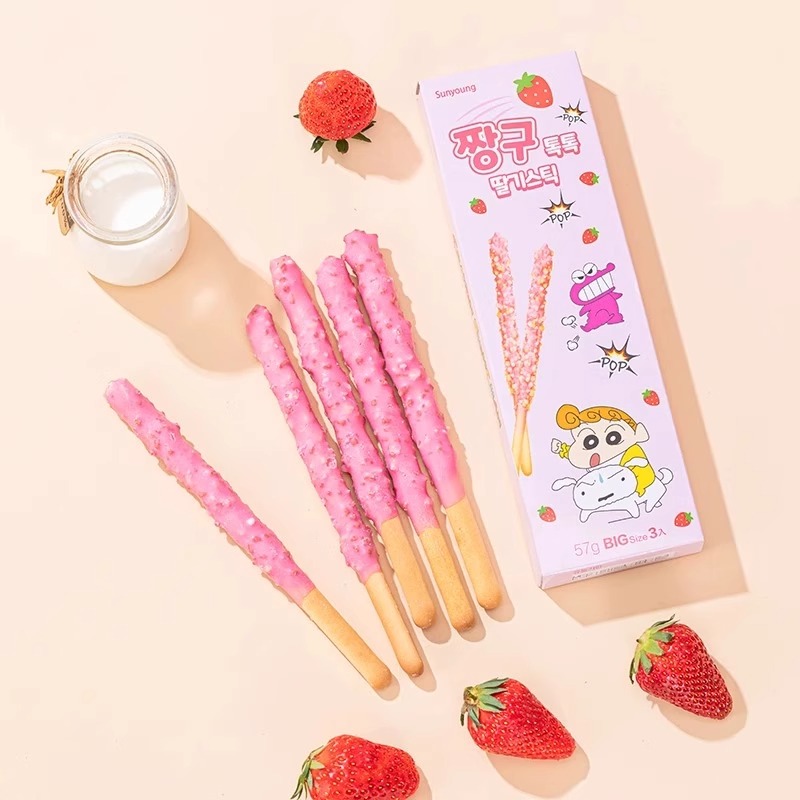 Sunyoung蜡笔小新跳跳糖巧克力涂层饼干棒韩国进口草莓味儿童零食