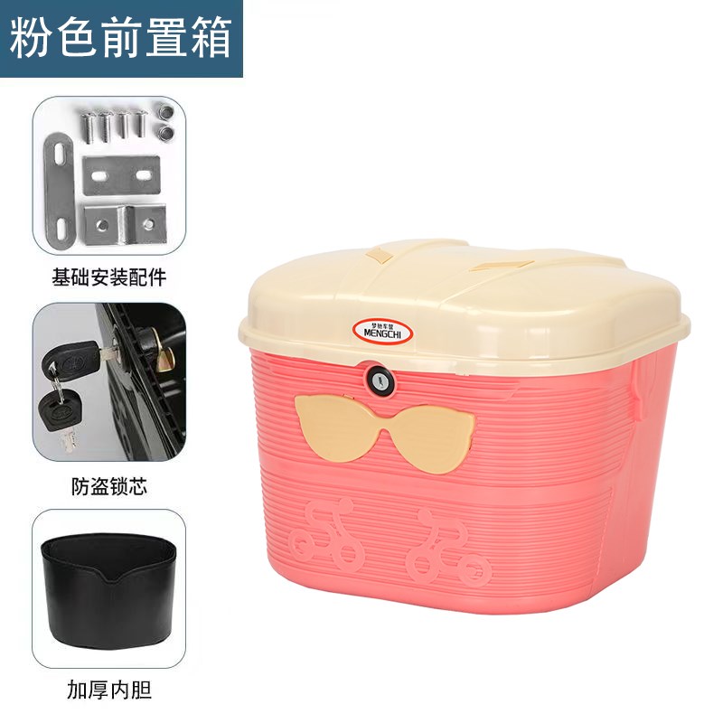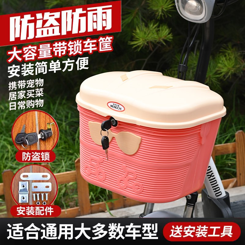电动自行车前车筐带锁防雨车篮大容量头盔收纳车篮菜篓加厚储物箱