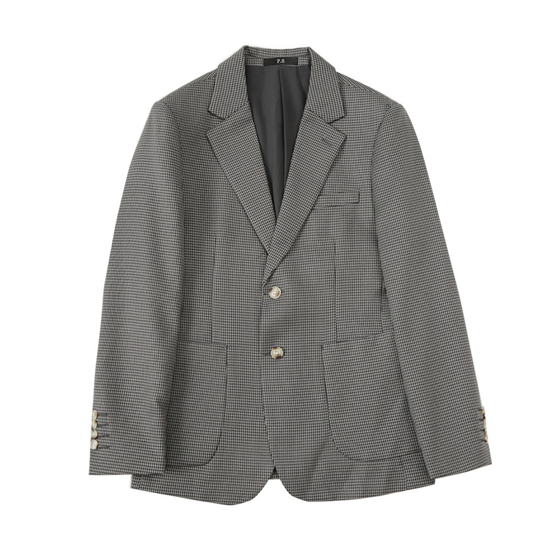 休闲西装外套男士千鸟格子修身百搭正装上衣时尚商务痞帅单西服