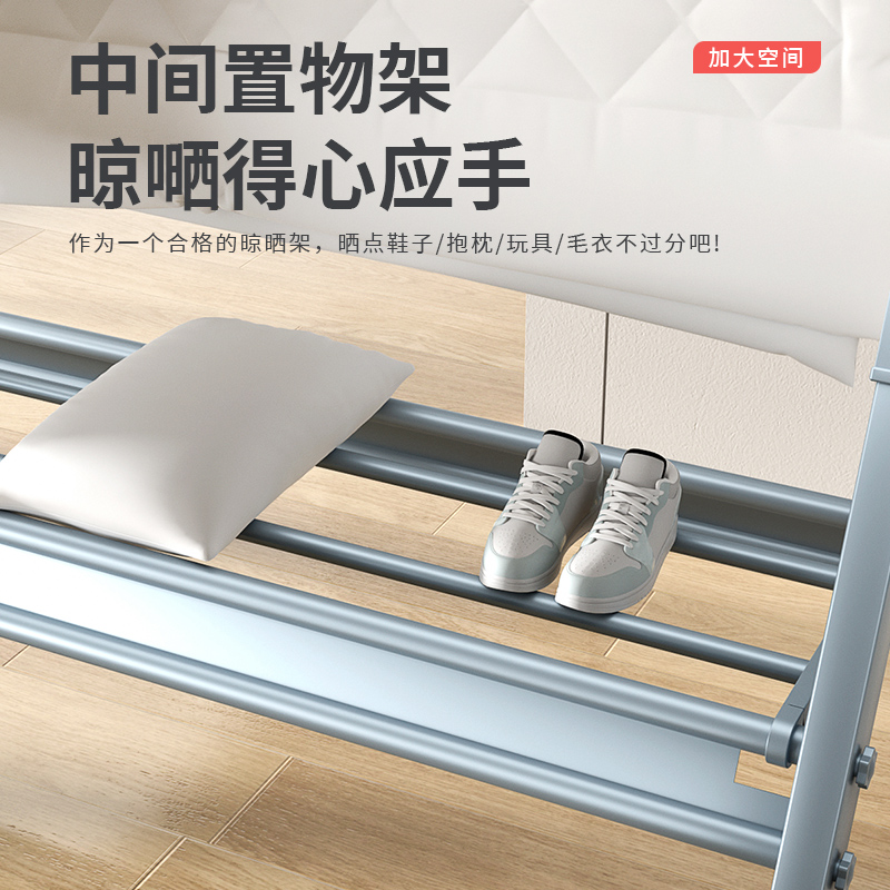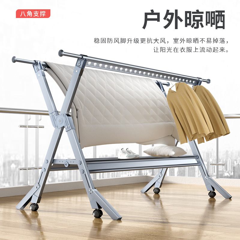 晾衣架落地折叠室内家用铝合金晒衣架阳台晒被子神器伸缩挂衣架子