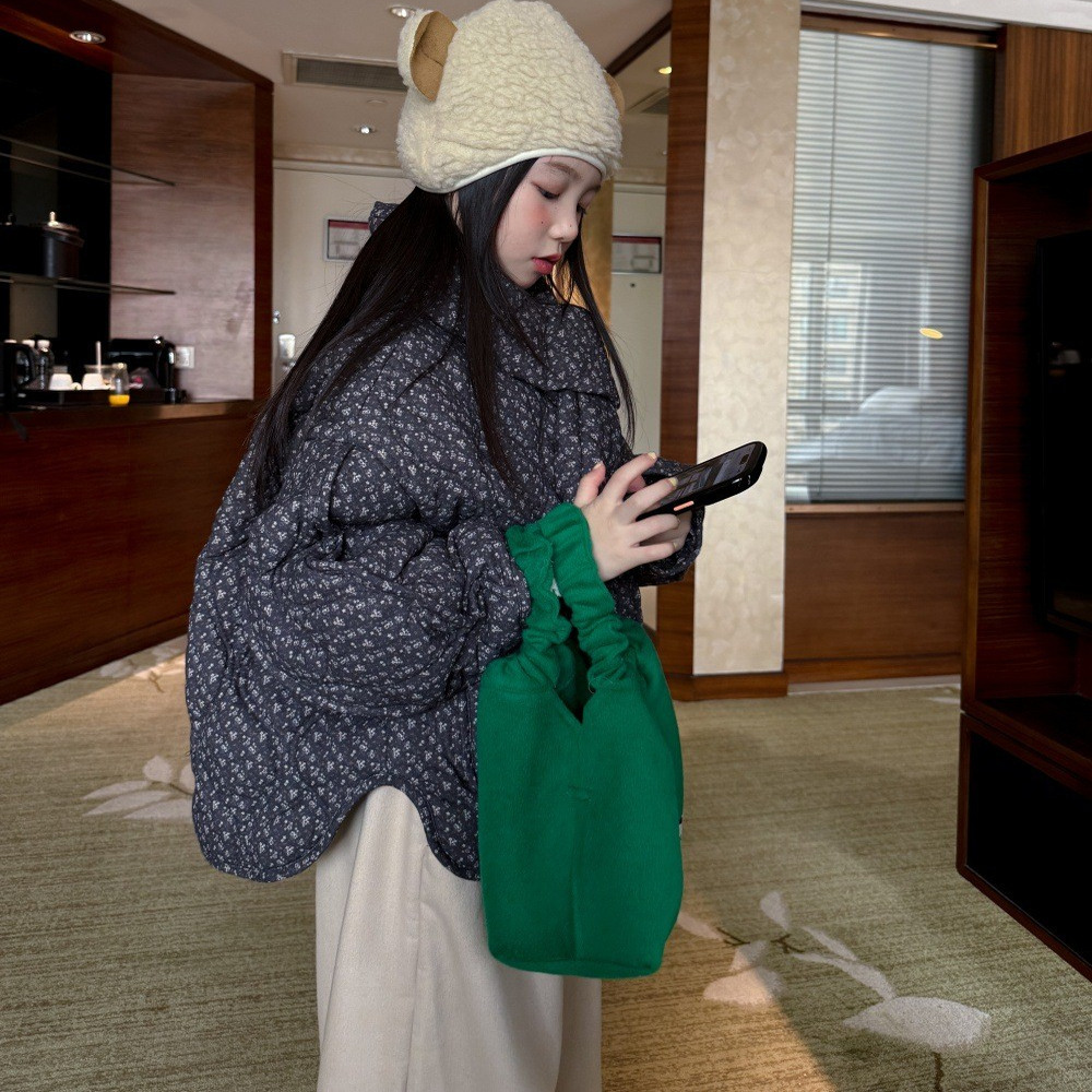 女童外套2025秋冬新款韩版儿童碎花围脖棉衣加厚锁温洋气保暖棉袄