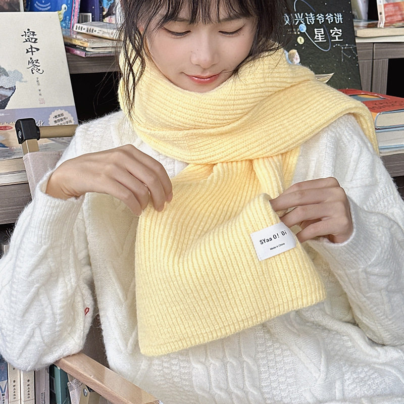 念可*韩版纯色针织围巾女学院风加厚保暖冬季围脖男毛线时尚ins