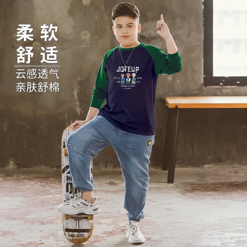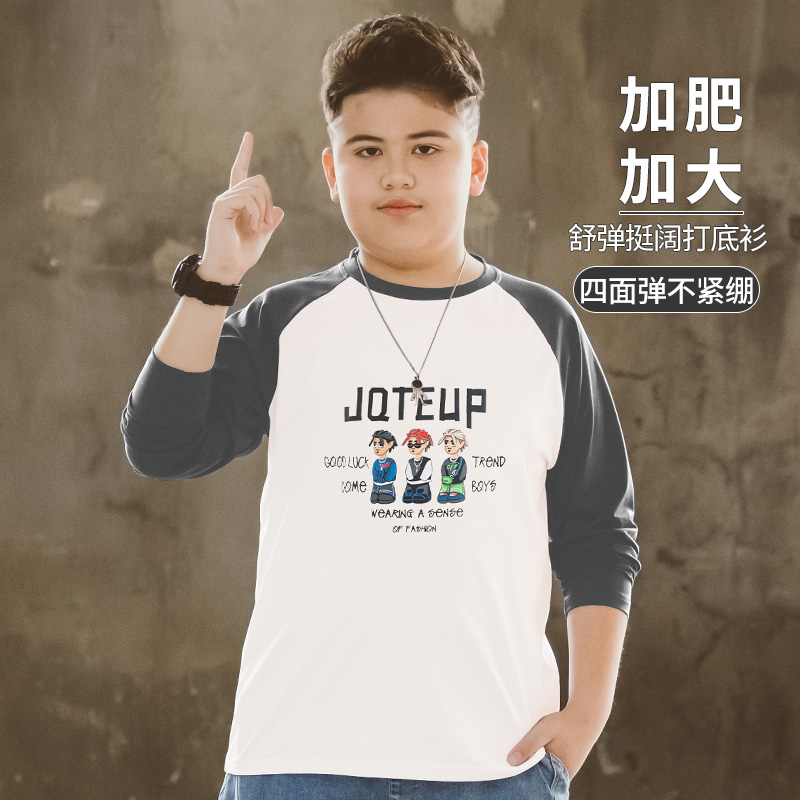 男大童长袖T恤2025新款青少年胖孩子童装初中学生加肥加大打底衫t
