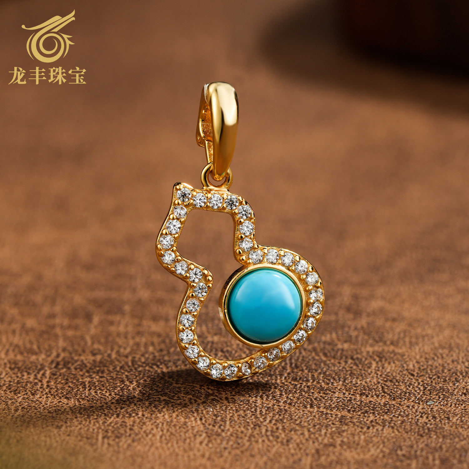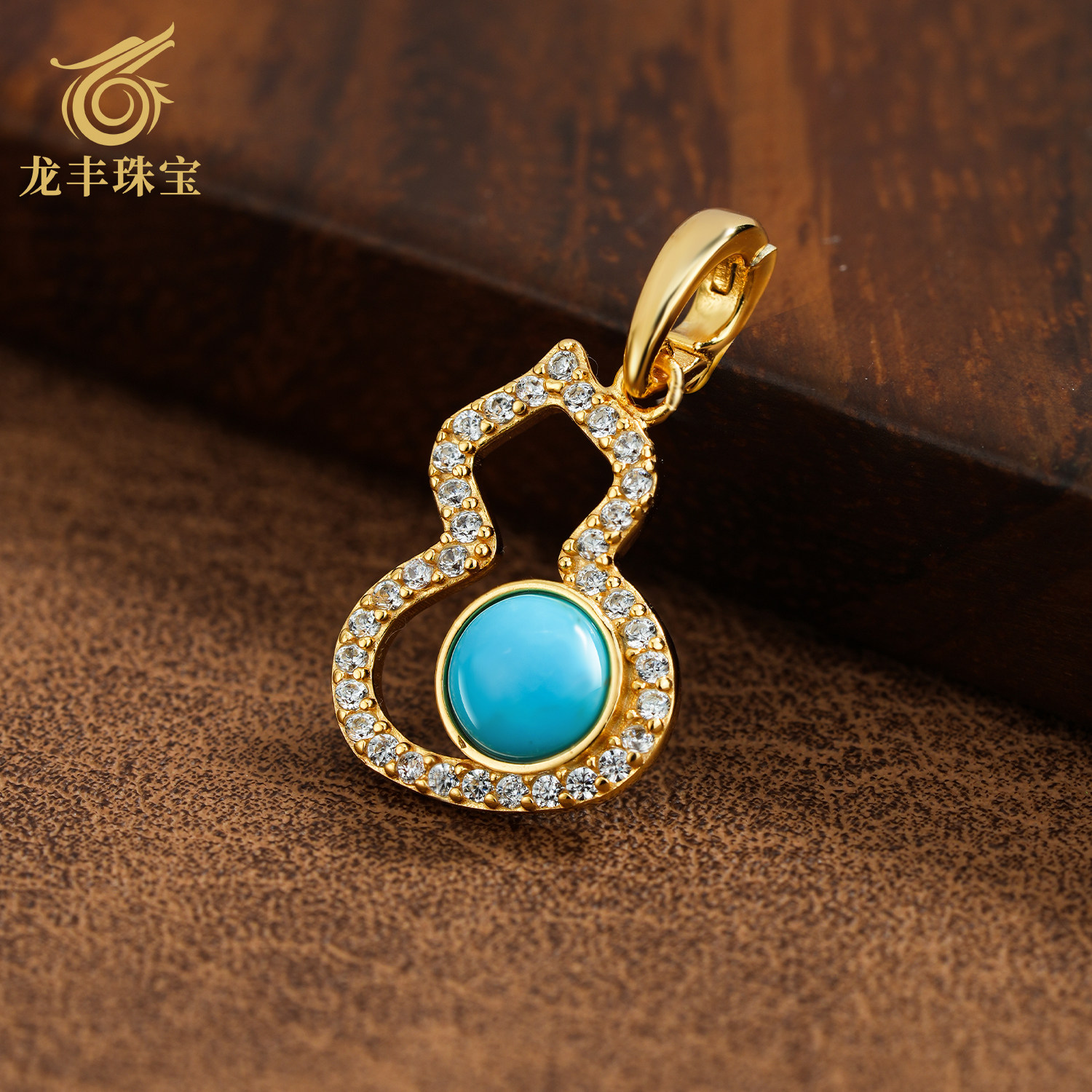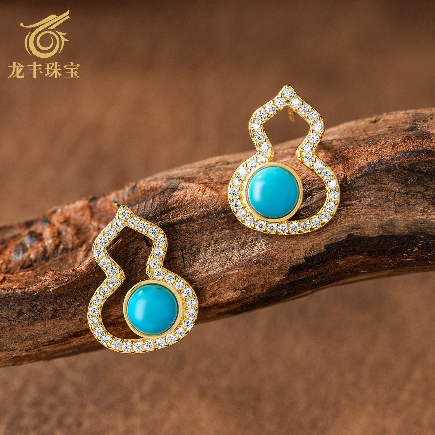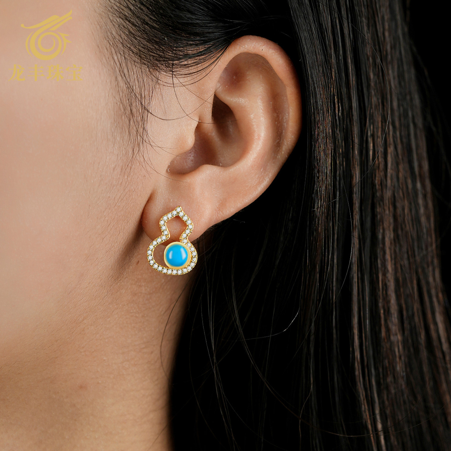 龙丰绿松轩天然绿松石葫芦耳钉正品S925银镀18K金圆形高级感耳饰