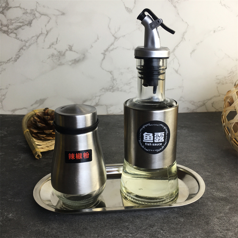 不锈钢玻璃油瓶 时尚调味罐 餐厅酱油壶调味瓶组合 醋壶防漏油罐