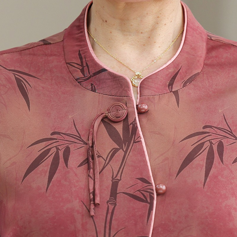 老年人夏装女妈妈圆领衬衫70岁老太太九分袖衣服奶奶夏季洋气上衣