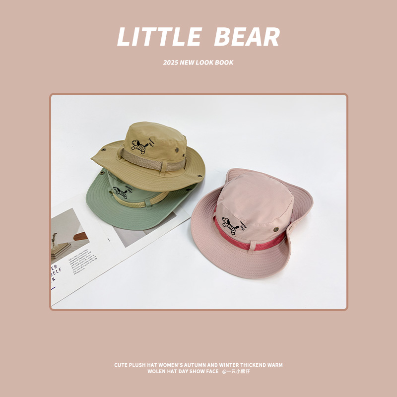 可爱粉色小狗刺绣登山帽女夏户外徒步遮阳防晒渔夫帽西部牛仔帽子
