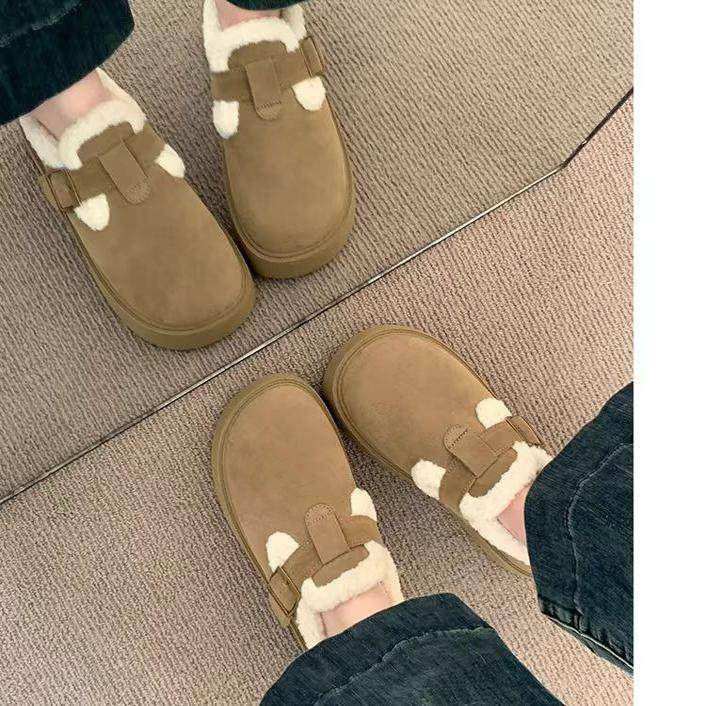 专柜款真皮2025新女款秋冬厚底加绒保暖雪地靴休闲勃肯乐福棉鞋