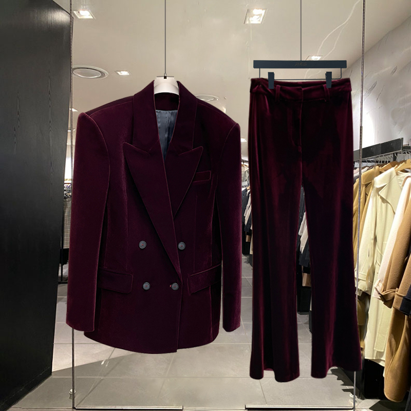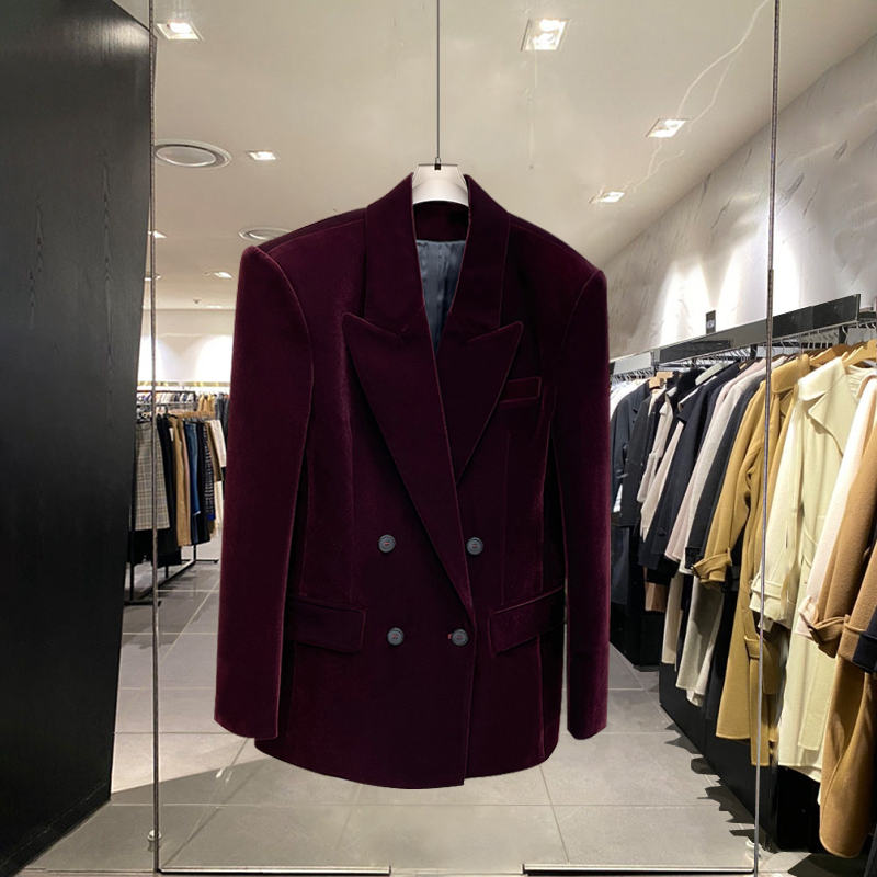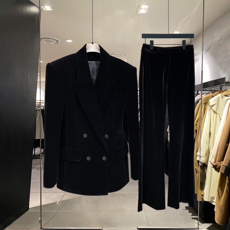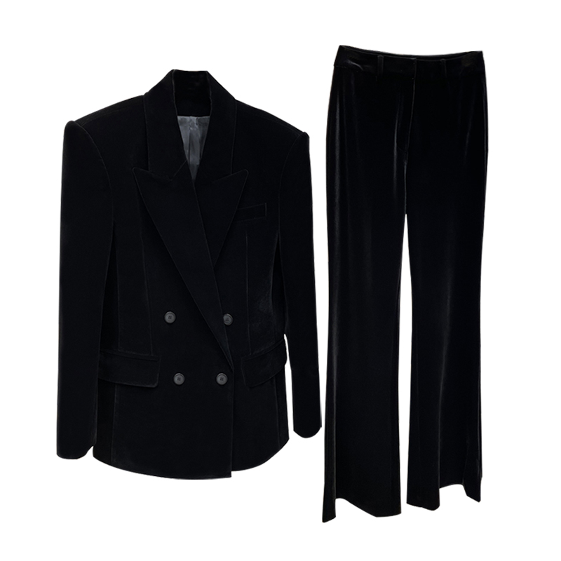 2025春季新款双排扣金丝绒女士时尚西装外套潮流女郎百搭上衣