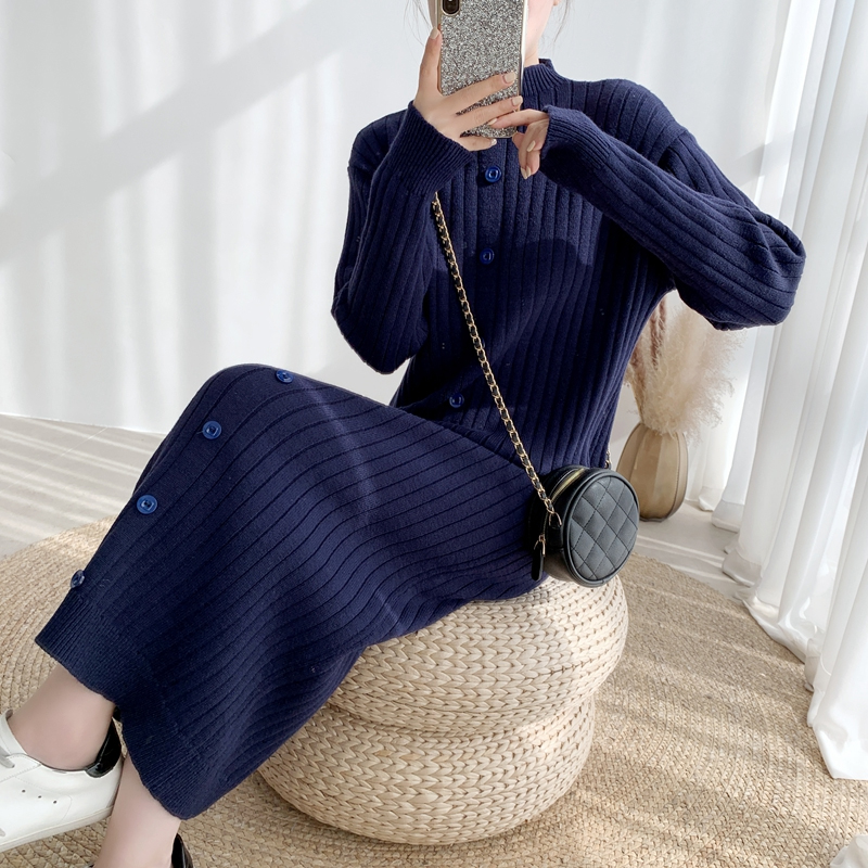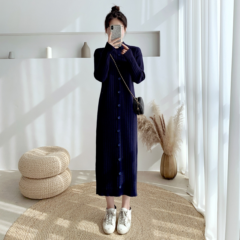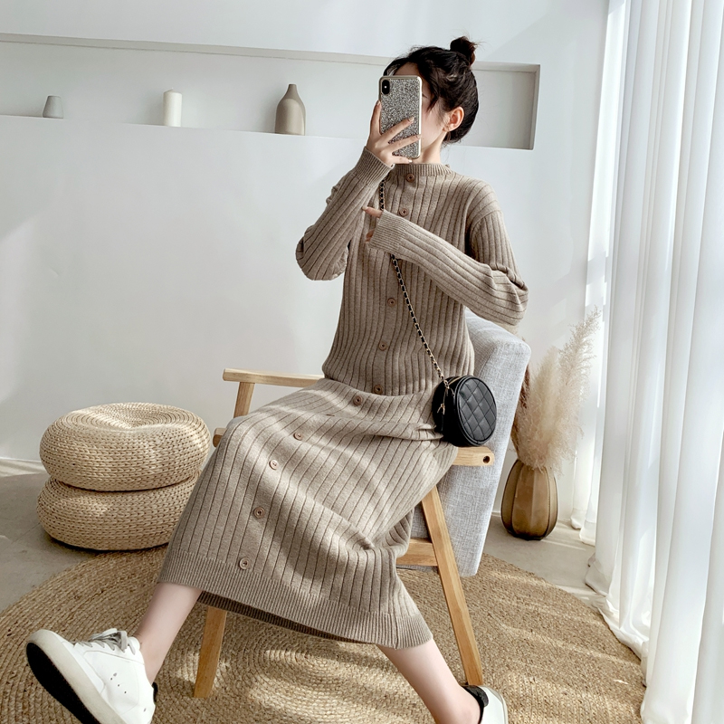 秋冬装2025年新款修身过膝长款毛衣裙子女长袖内搭打底针织连衣裙