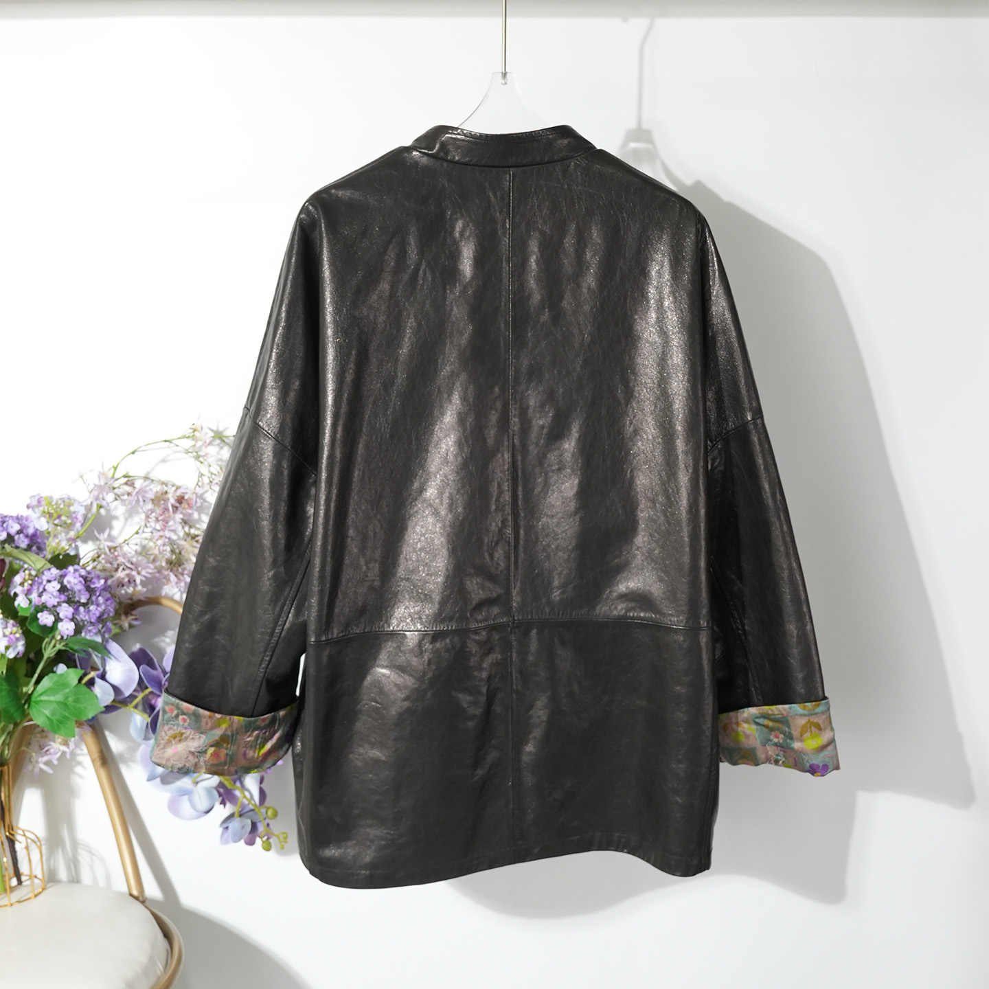 2025秋季新中式立领真皮皮衣女士高级羊皮夹克宽松显瘦两面穿外套